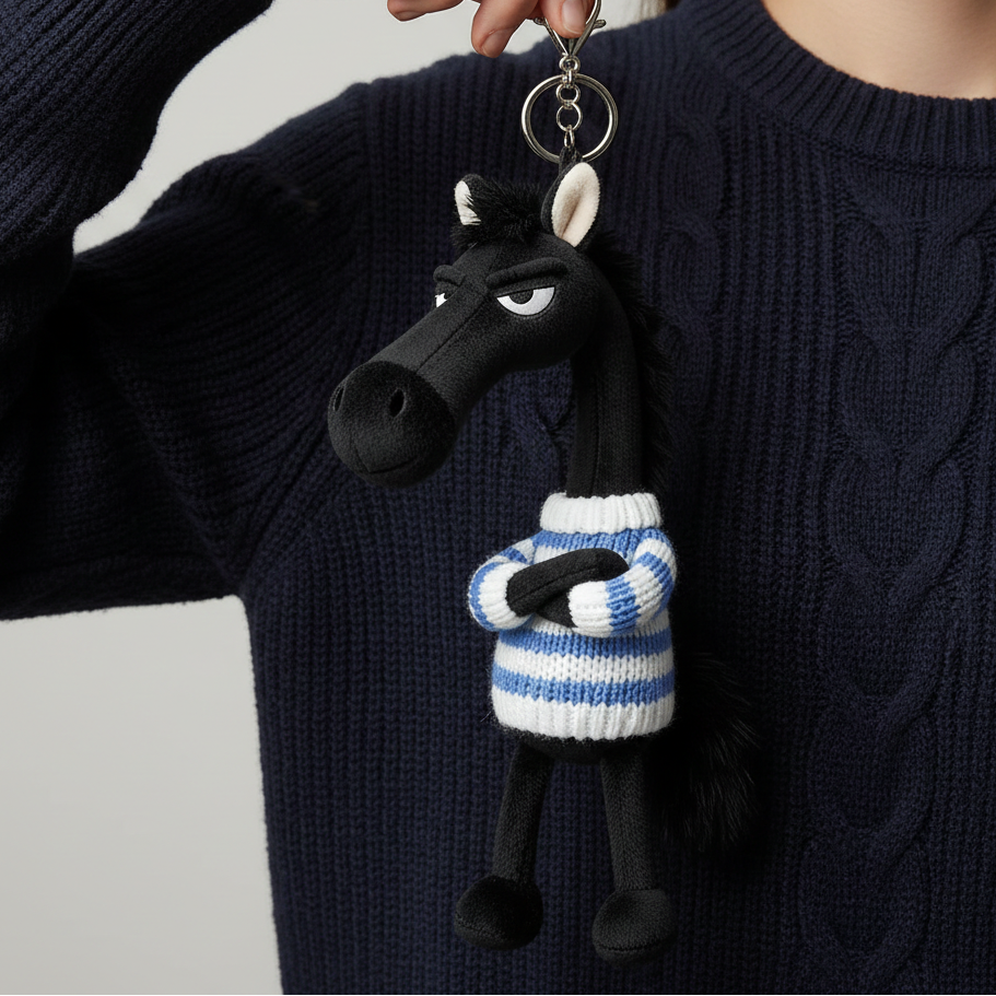 Drzý kůň - Černá a modrá Přívěsek na klíče