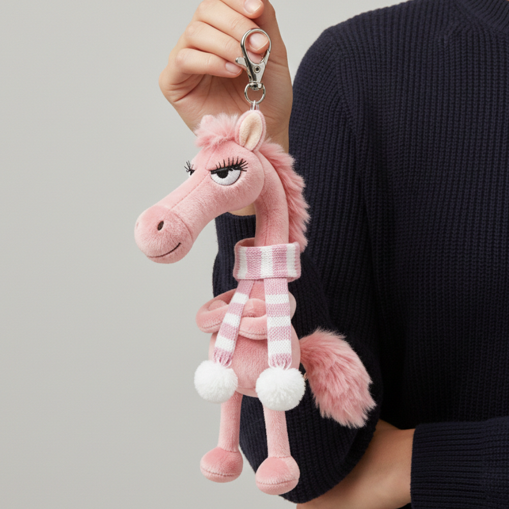 Drzý kůň - Růžový Přívěsek na klíče
