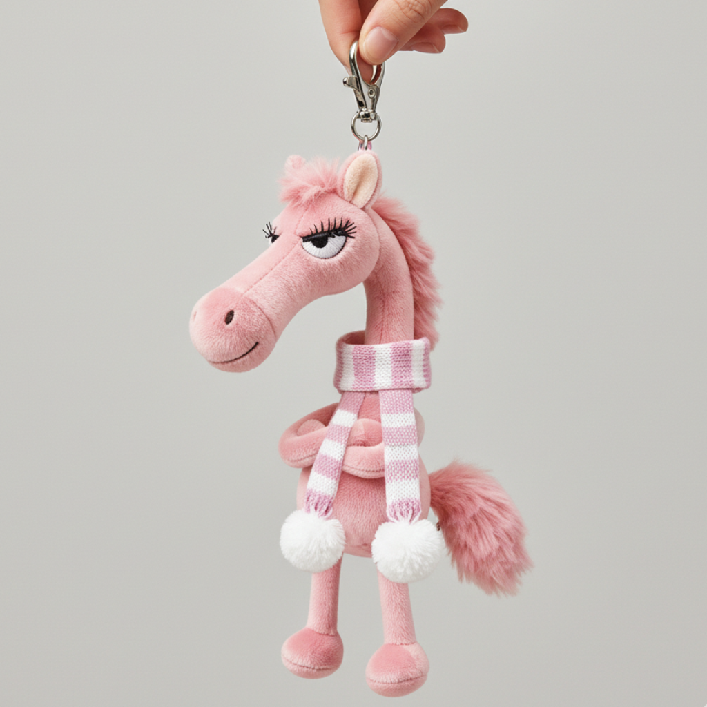 Drzý kůň - Růžový a bílá Přívěsek na klíče