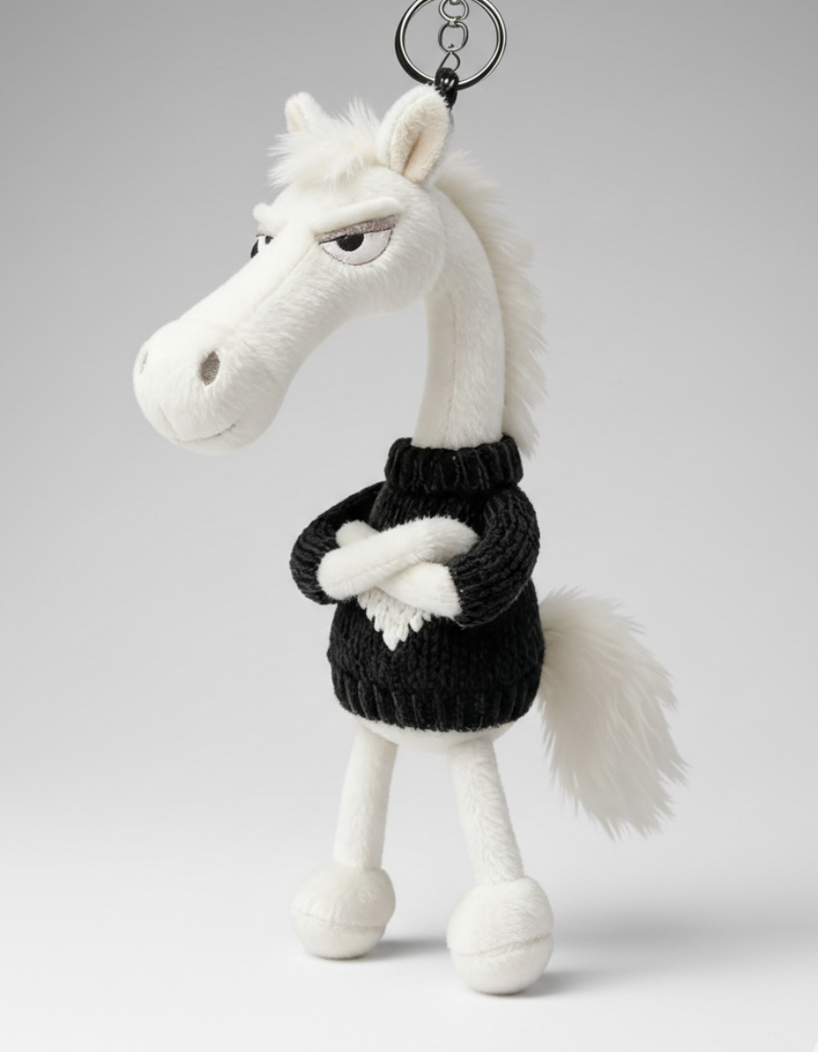 Bílá a černá Přívěsek na klíče "Drzý kůň"