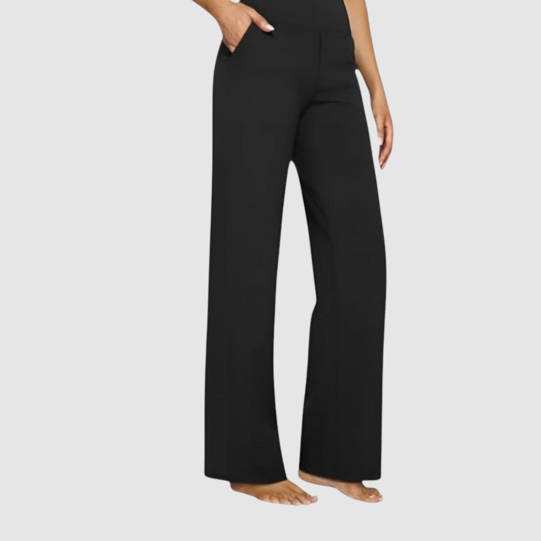 Pohodlné a stylové kalhoty, které kombinují moderní střih s maximálním komfortem. Díky vysokému pasu krásně zvýrazňují siluetu a volná nohavice poskytuje volnost pohybu. Praktické kapsy dodávají model funkčnosti, díky čemuž jsou ideální pro každodenní nošení i volný čas.